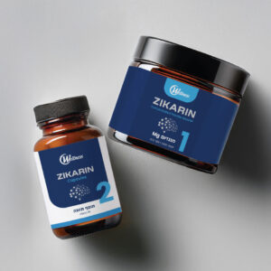 עיצוב Zikarin – מארז תוספי תזונה לשיפור קוגניטיבי. עיצוב המארז החיצוני ושני המוצרים הפנימיים.